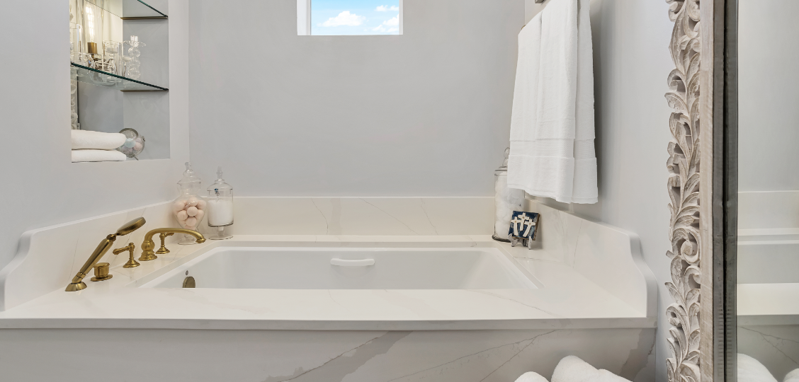 The master bathroom underwent a complete overhaul, featuring a custom wood vanity that adds sophistication. An undermount tub with exquisite quartz surround creates a timeless aesthetic, while the redesigned shower showcases meticulous craftsmanship and channel LED lighting, offering a serene atmosphere that completes this luxurious retreat.