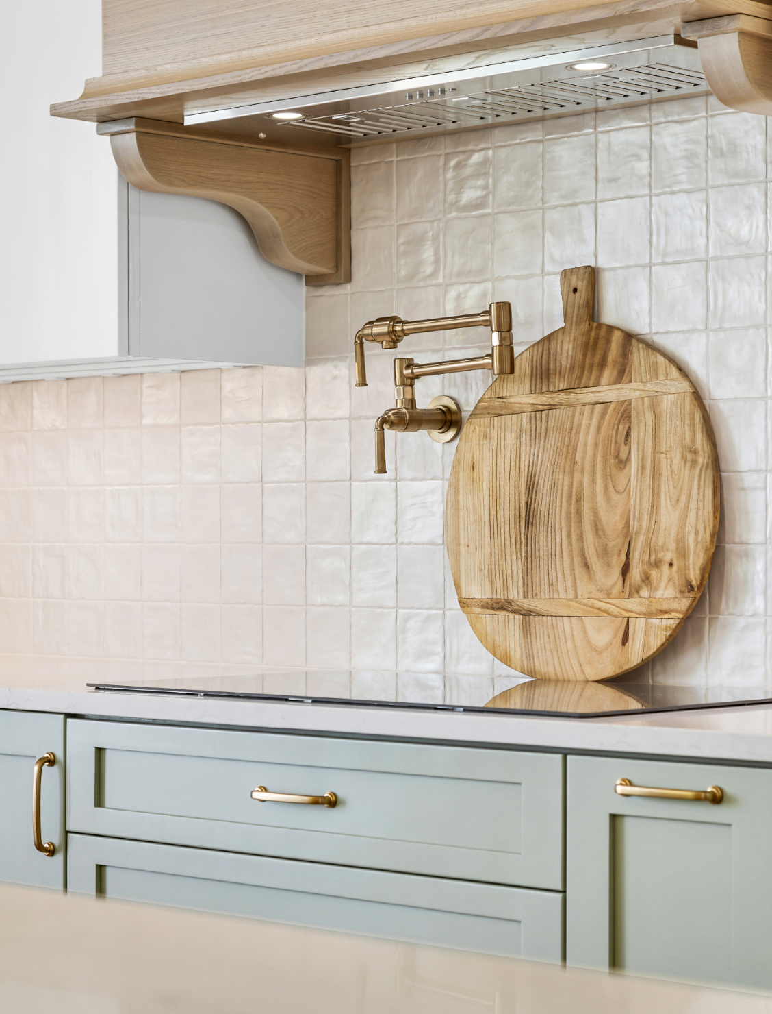 The remodel also involved structural changes. We relocated the kitchen to an adjacent wall and closed a window to suit the updated layout, while plumbing and electrical systems were rerouted to ensure the kitchen’s design offered both style and convenience. One highlight of the renovation was the addition of a sleek pot filler above the range, enhancing the cooking experience by providing easy access to water for filling large pots.