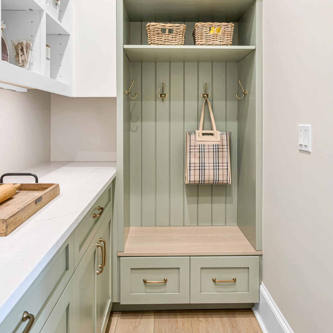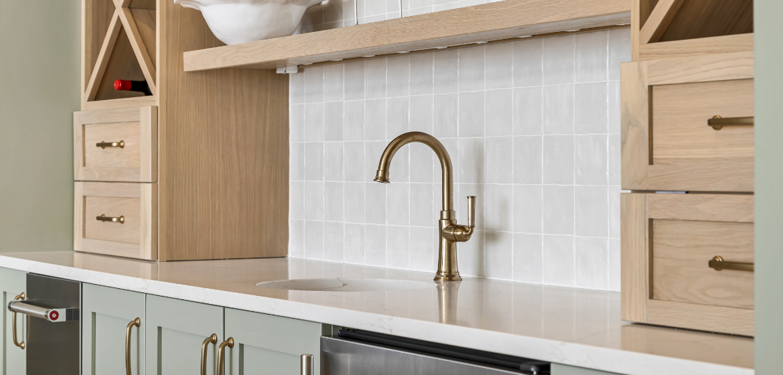 To maximize storage and enhance the kitchen’s aesthetic, the homeowners chose classic Shaker-style cabinetry in Oyster Bay and Snowbound, creating a bright and timeless look. Soft, functional lighting was added above and below the cabinets for both ambiance and practicality.