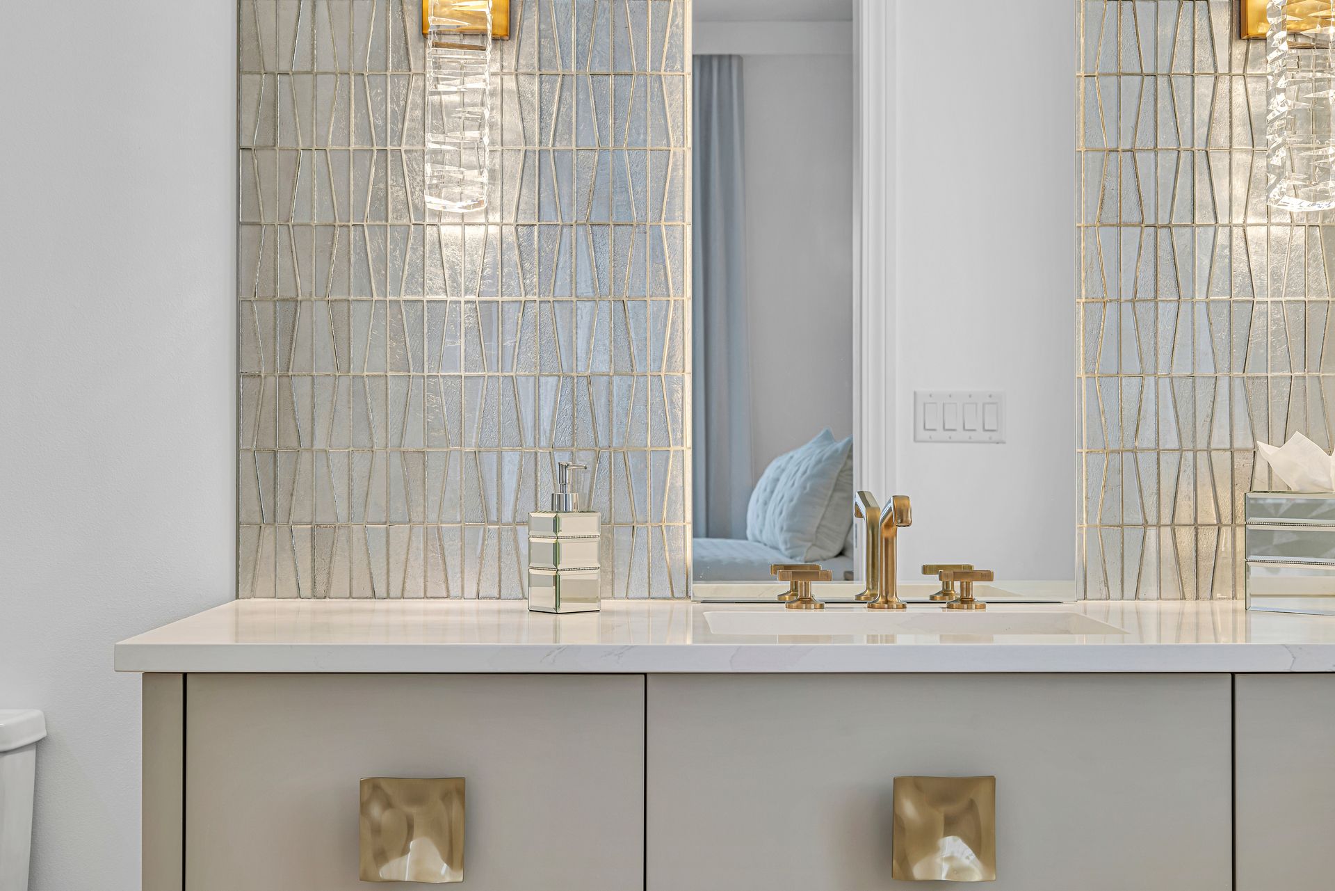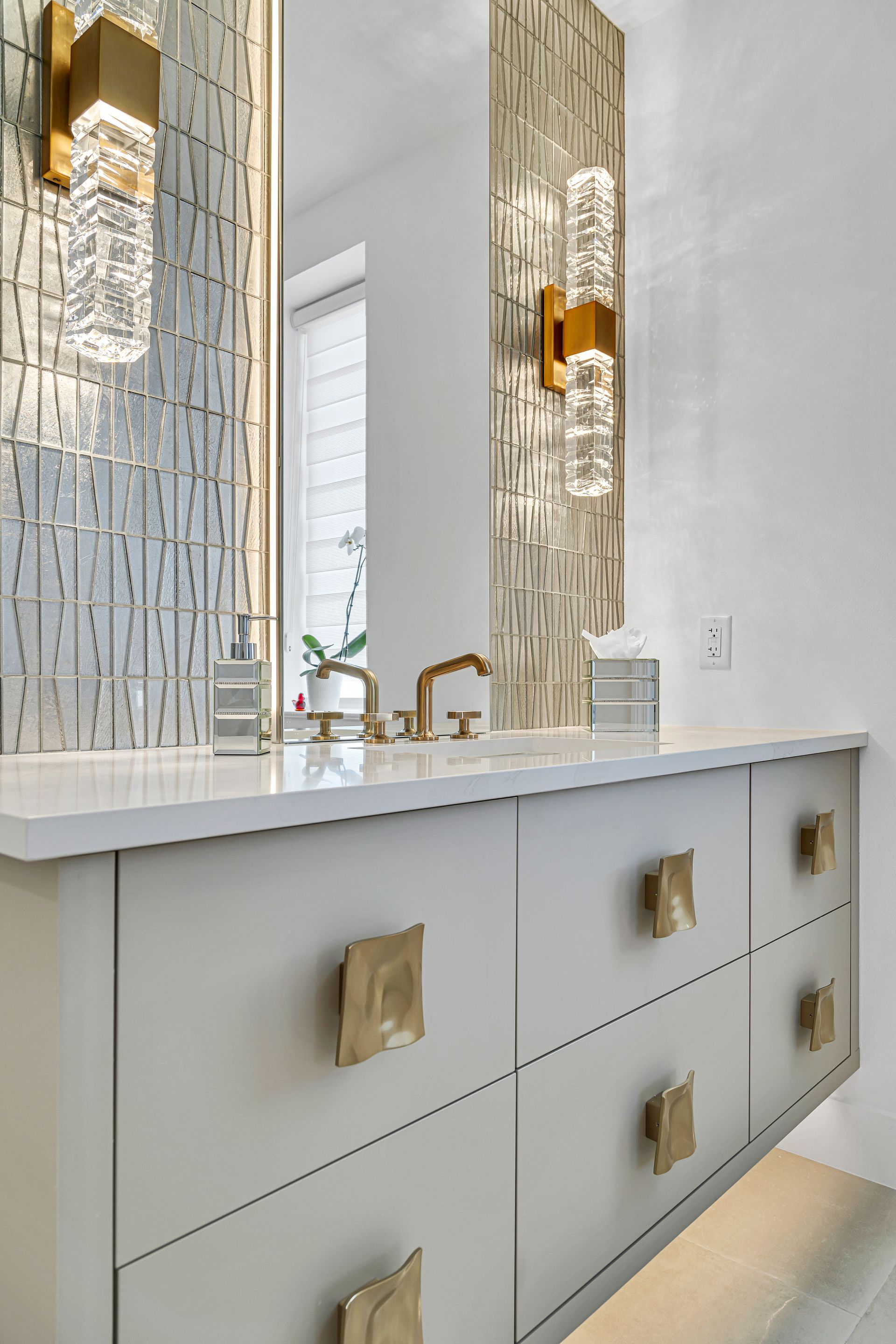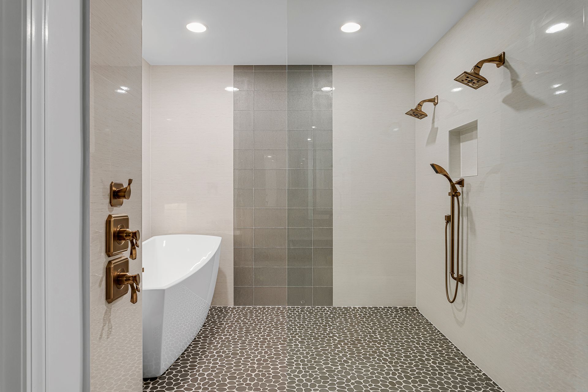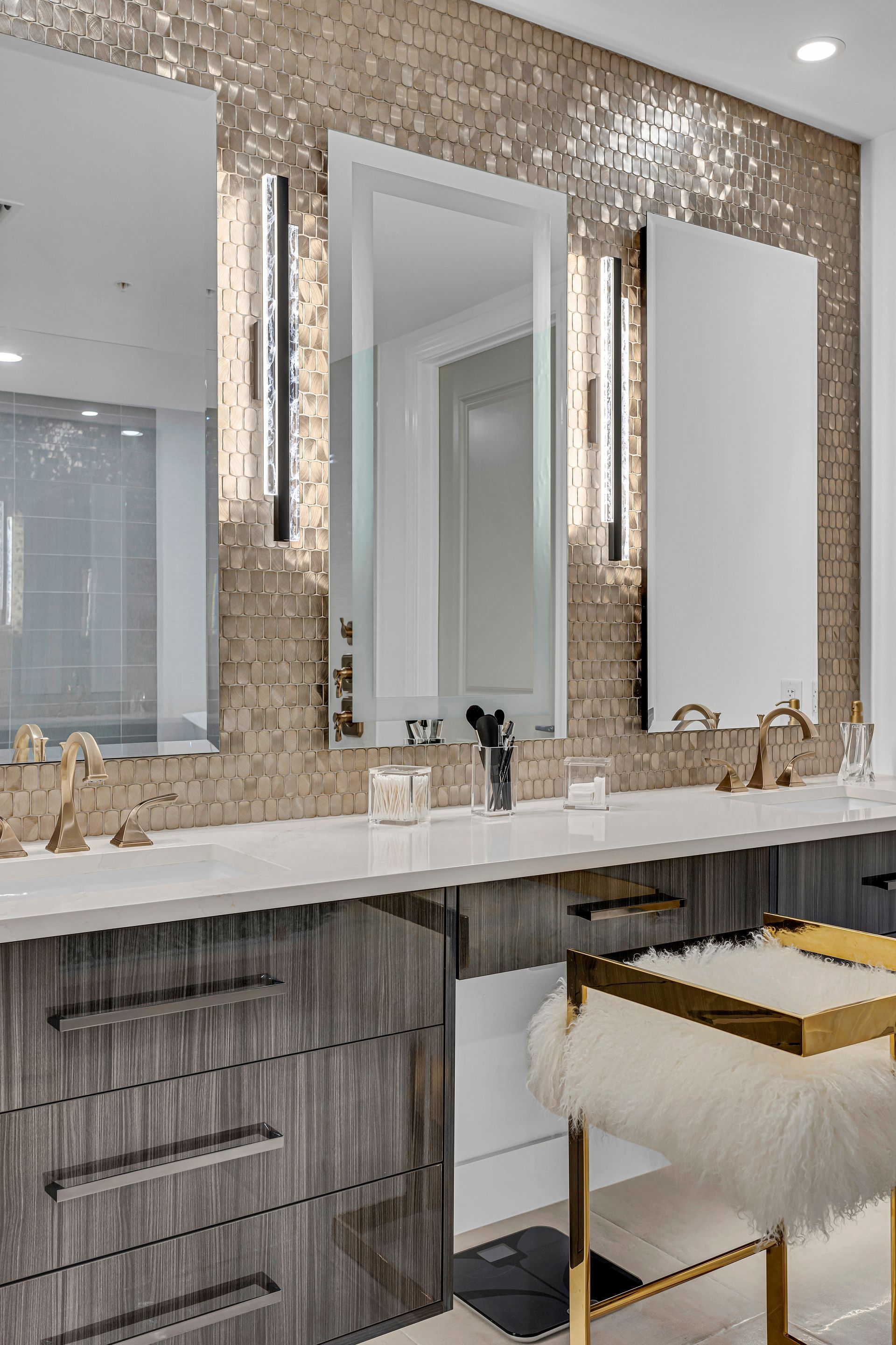 The master bathroom was completely transformed. We replaced the outdated flooring, tub, shower, and fixtures with sleek, modern elements. The space now features elegant tile floors and a stunning tile wall behind a luxurious soaking tub. The shower was entirely rebuilt with dual handheld showerheads, a custom glass enclosure, and beautifully tiled walls and floors. We also incorporated a built-in, LED-lit soap niche and ensured the shower was fully waterproofed for lasting durability. The vanity was upgraded with new countertops, lighting, mirrors, and hardware to complete the modern look.