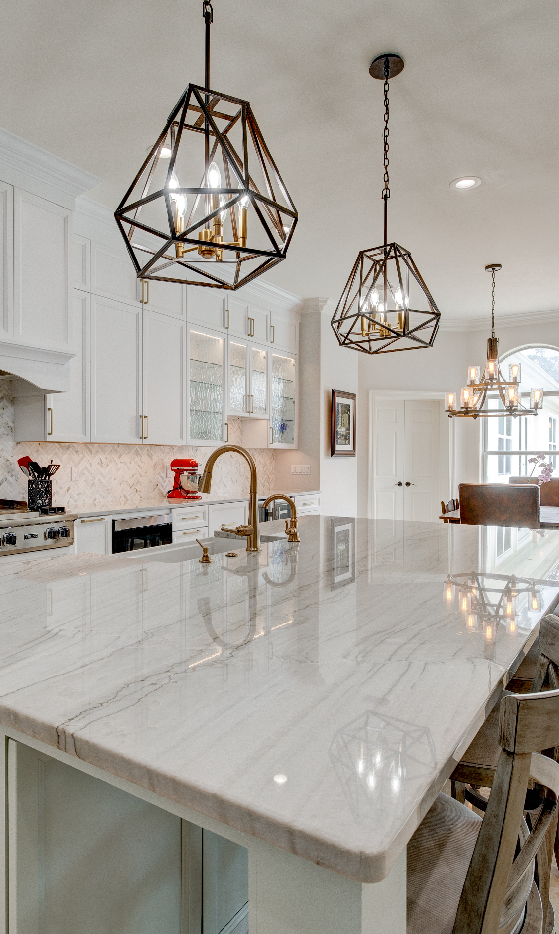 The renovation extended beyond aesthetic changes, as new walls were framed according to the updated floor plan. Plumbing and electrical systems were repositioned to accommodate the new layout, ensuring that functionality was seamlessly integrated into the kitchen’s design. The addition of a pot filler above the range brought convenience to the cooking process, allowing for easy access to water without the need to transport heavy pots.